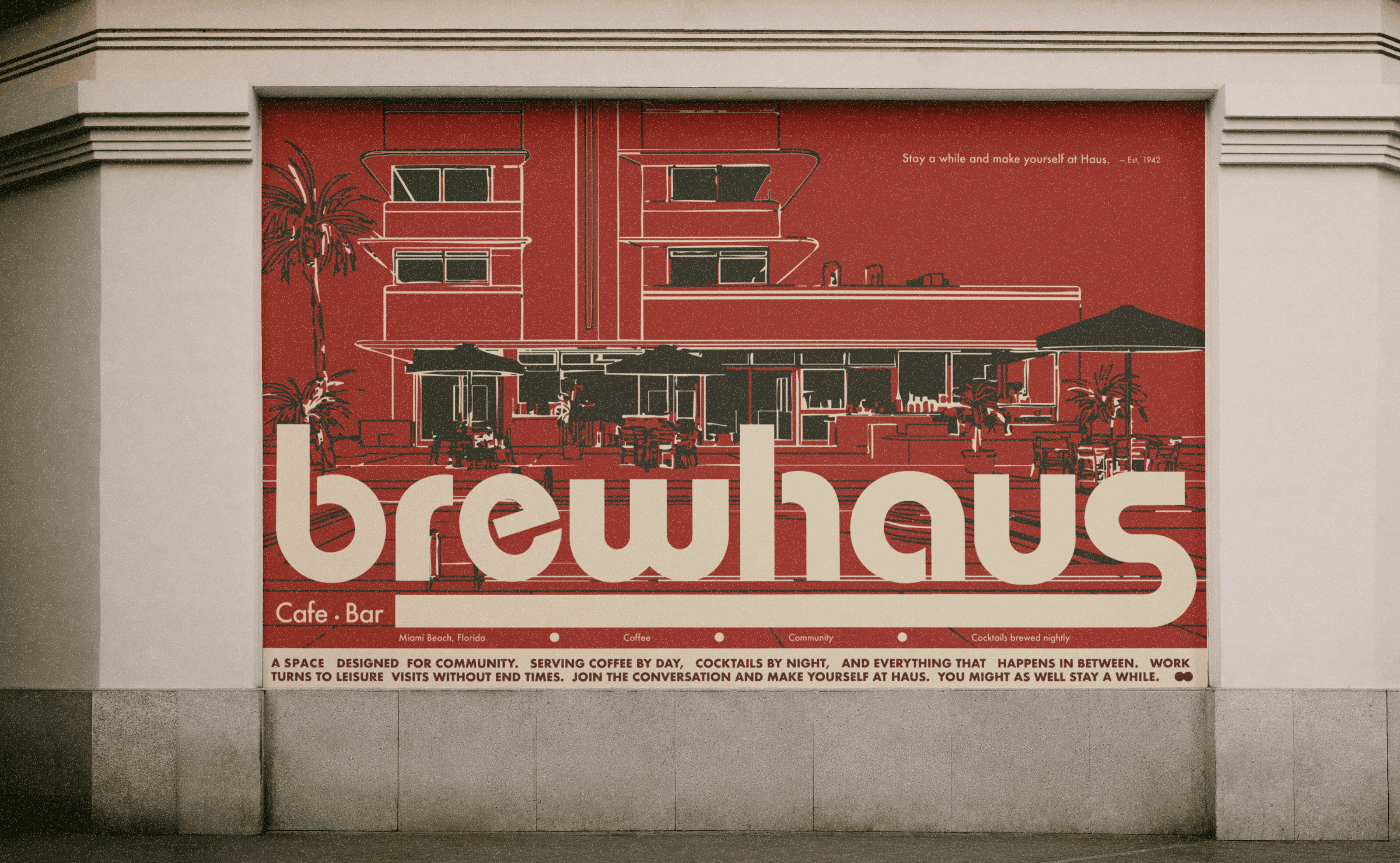 Brewhaus is a café bar by day and a brewery by night, defined by continuity rather than contrast. Set in Miami, the brand draws from Bauhaus principles and mid-century modern design to create a system that feels structured and inviting. The identity accommodates shifting energy throughout the day while maintaining a consistent visual tone. The brand system emphasizes geometric form, typographic clarity, and a restrained palette rooted in modernist design, allowing form and function to work in tandem. Designed to translate across printed and environmental applications, the identity informs how Brewhaus presents itself across physical and experiential touchpoints. Positioned as more than a transactional space, Brewhaus suggests an environment shaped by intention, rhythm, and presence while remaining culturally current.